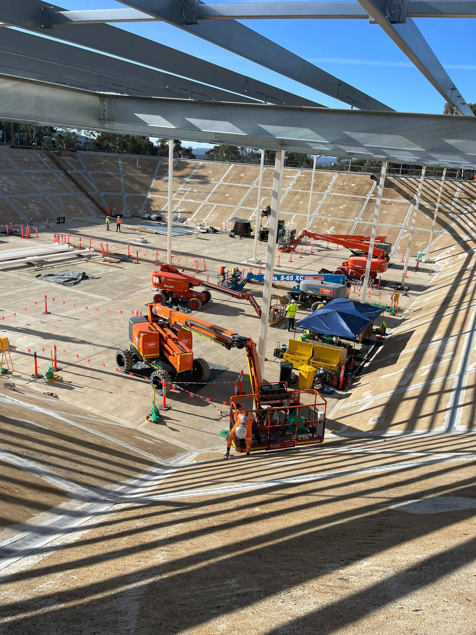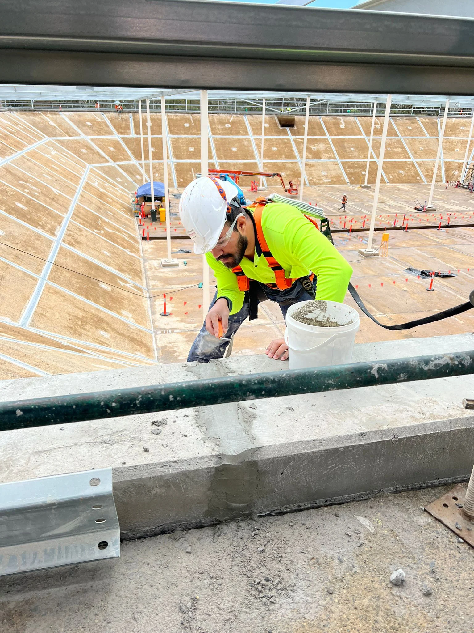 The team were required to operate and work off two EWPs in order to reach certain areas of the water tank. Attention to detail and care were required throughout this project for the tank to pass rigorous leak testing at project completion.